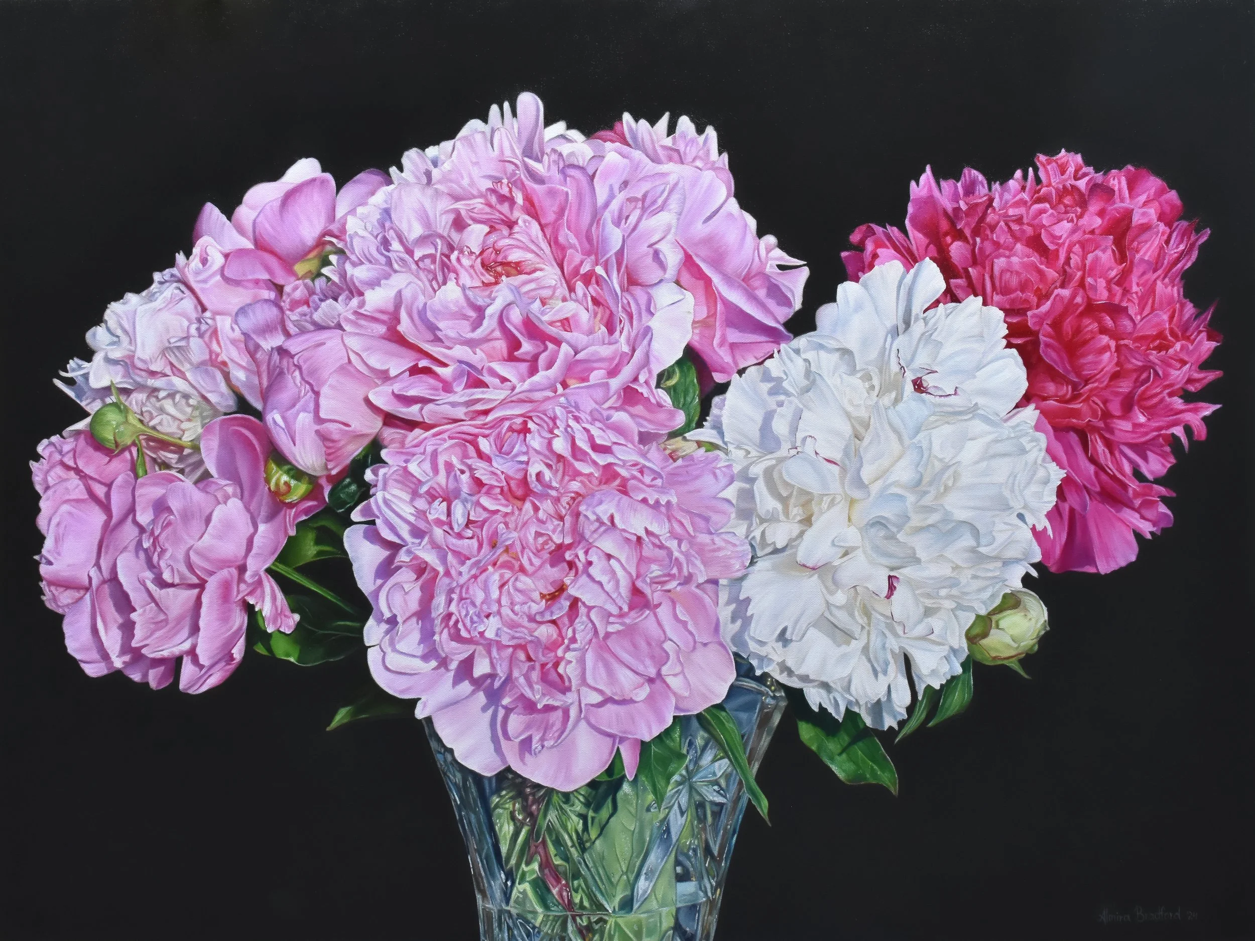 Spring's Last Splendor symbolizes the exquisite beauty of late spring through the delicate petals of peonies in full bloom. This painting was inspired by my fist visit to a peony farm IN 2024.